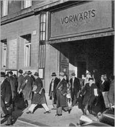 Ab 1909 wurde unter großen finanziellen Opfern das neue Parteihaus "Vorwärts" an der Rechten Wienzeile errichtet. Im Vorwärtsgebäude waren auch die Druckerei und der Verlag der Partei untergebracht, ab 20. Juli 1910 erschien die Arbeiter-Zeitung hier.