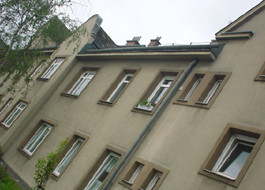 Insbesonders der sogenannte "Hufeisenbau" neben dem Rohraurerpark, der mit seinem ehrenhofartigen Straßenhof, den Erkern und Loggien am stärksten von der Gemeindebauarchitektur des "Roten Wien" beeinflusst wurde, und der nach einem früheren Kinderfreibad im großen Innenhof "Planschbeckenbau" benannte Teil Possingergasse 25.