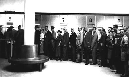 Kinokassa der Urania nach dem Bau der neuen Kassenhalle, 1935. Ein Kurssaal. Mikroskopierkurs in der Urania.